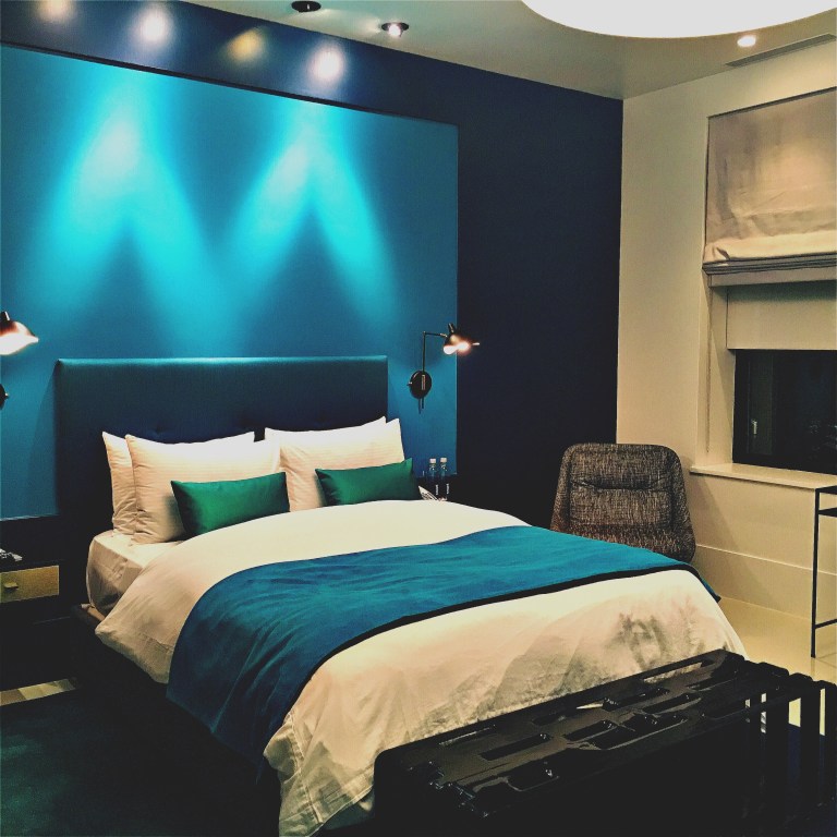 Our room is white/black/turquoise and the bed is plush as fuck. We’ll do a proper hotel post, if you wanna read about it.