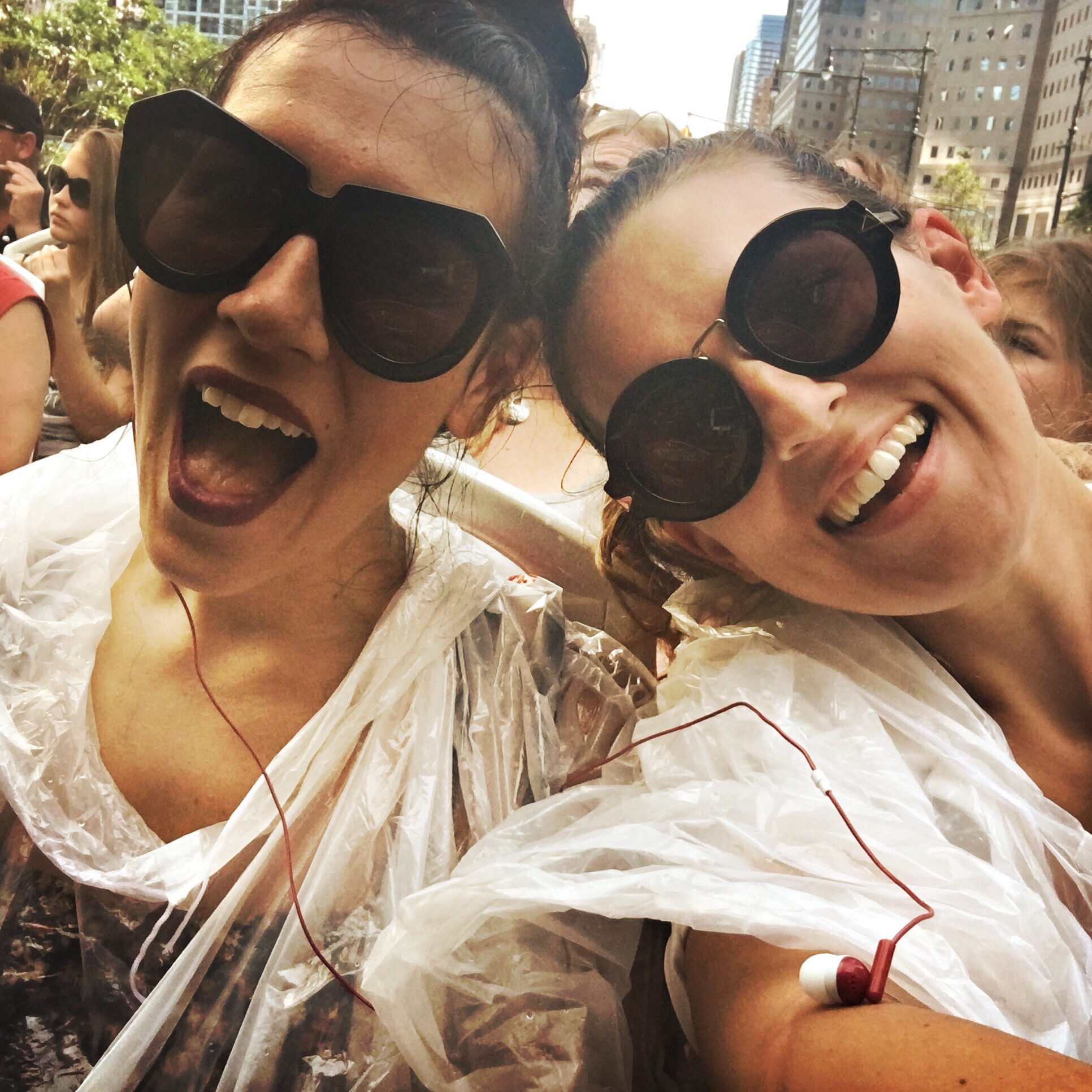 So, back on the bus, we carried around the western side of Downtown, and about 10 minutes in right by the financial district, the heavens opened and it poured. Like, massive splotchy wet as can be, summer rain storm. We were given ponchos (Big Day Out anyone?), and the whole thing was so ludicrous, all we did was laugh.