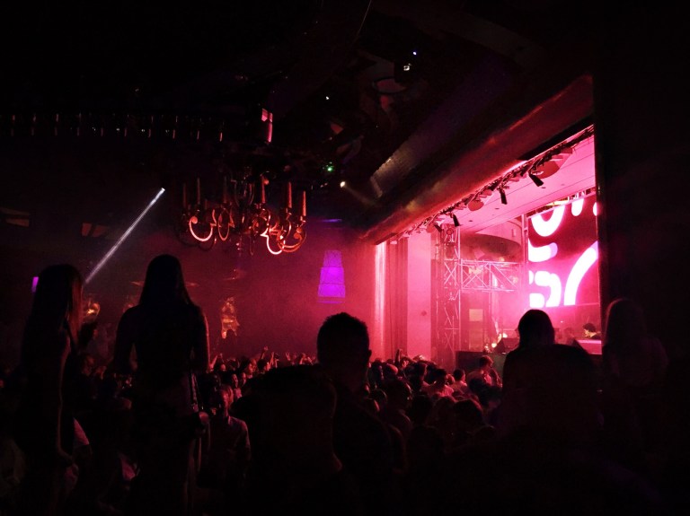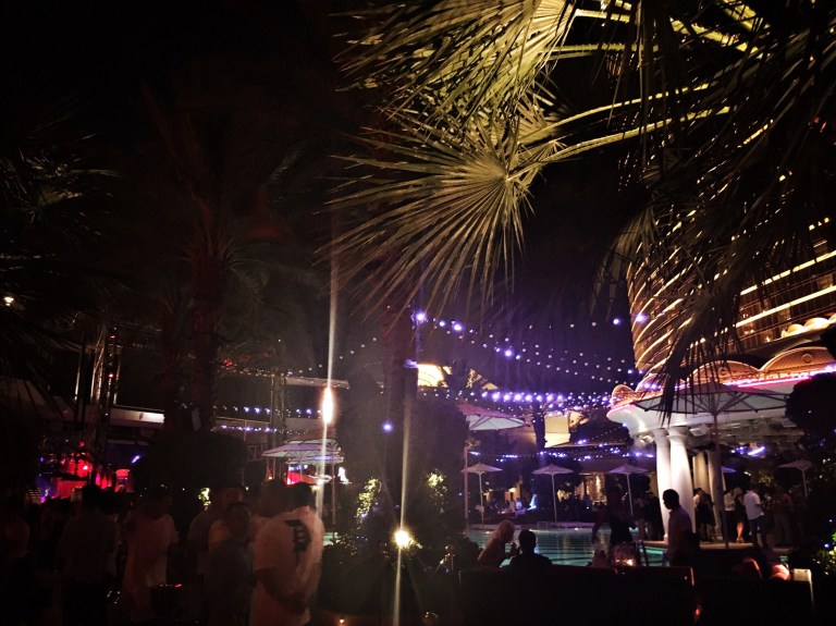 After racing off to the bathroom, we found a lovely little spot to chill and people watch on the other side of the pool. But the DJ was playing such a good set, we decided to head inside to the dance floor and see if anything was happening there yet.