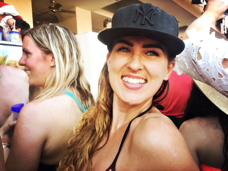 Next stop was finding a pozzie to dump our stuff and get in the pool…somehow. It was packed already, and we just couldn’t think too hard about what we were all stewing in.