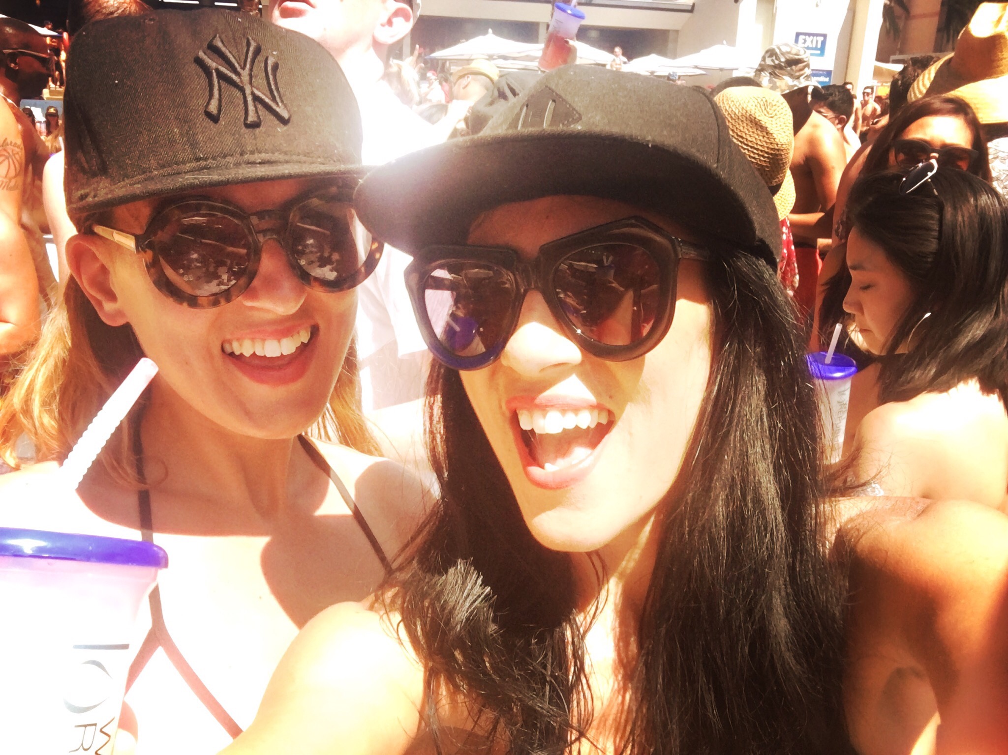 Next stop was finding a pozzie to dump our stuff and get in the pool…somehow. It was packed already, and we just couldn’t think too hard about what we were all stewing in.