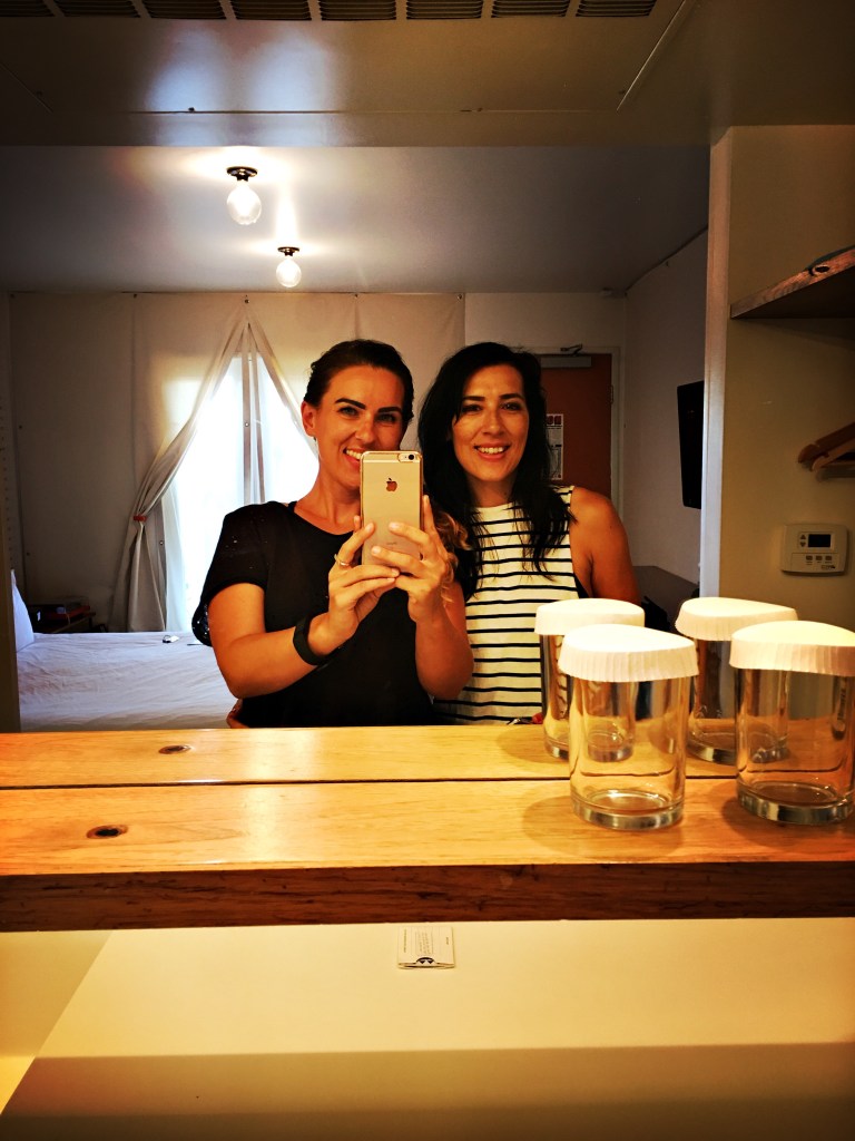 We’d paid for a higher level room so we had a whole outdoor area with a fire, not that we’d ever be able to use it as the temperature was about 46 degrees when we arrived at 5pm. The room was really cute, but you can tell it was just a motel once and has had a wash of ‘cool’ over it. Also we think the best way to describe it was akin to extremely fancy glamping – but with a big tv and all the mod cons.