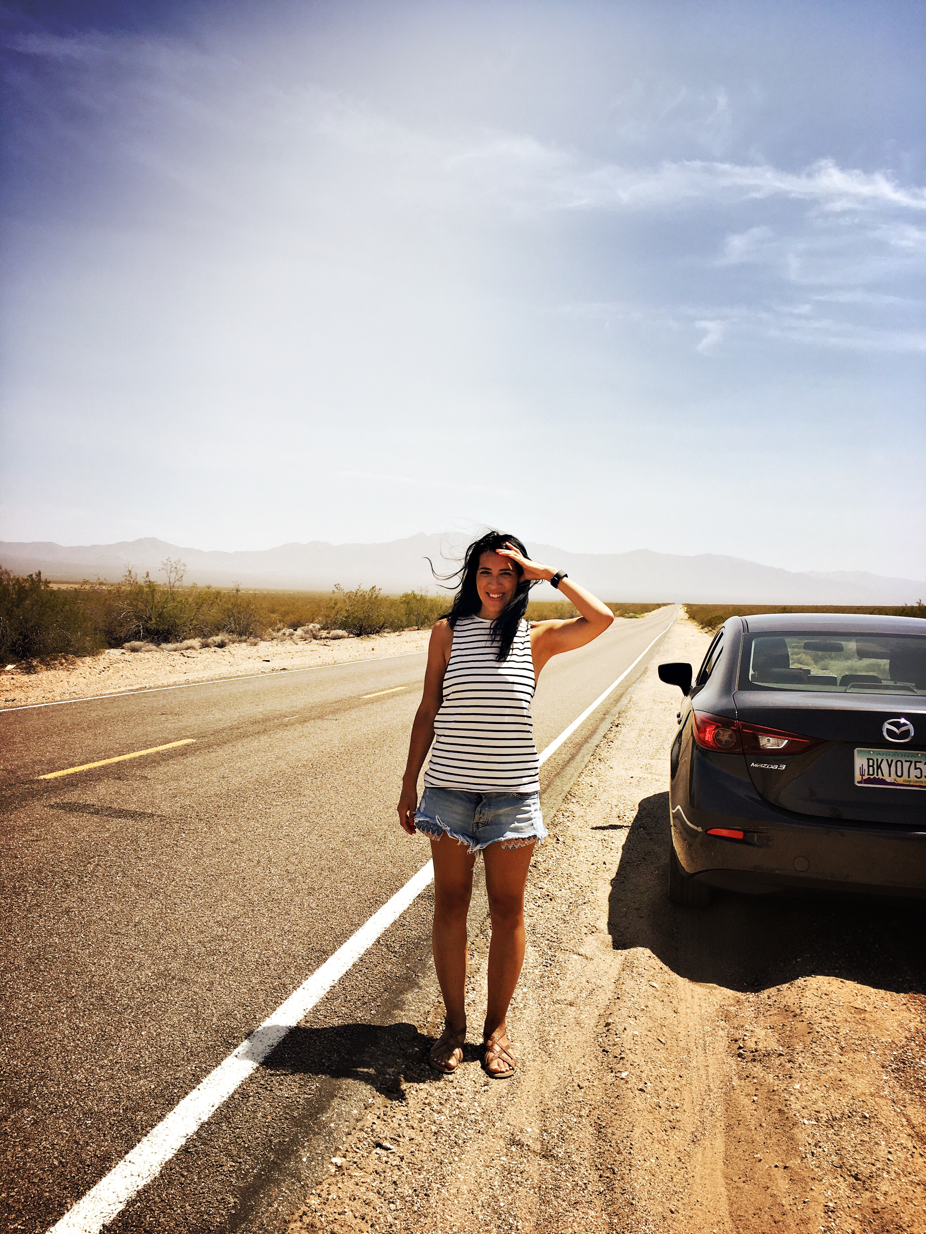 We got on the road and had to blast air con, which sucks as we both hate it with a passion. But, you guys, it was so freaking hot outside – while we were driving the highest temp on road was 118 Fahrenheit / 47.7 Celcius. What the actual F.
