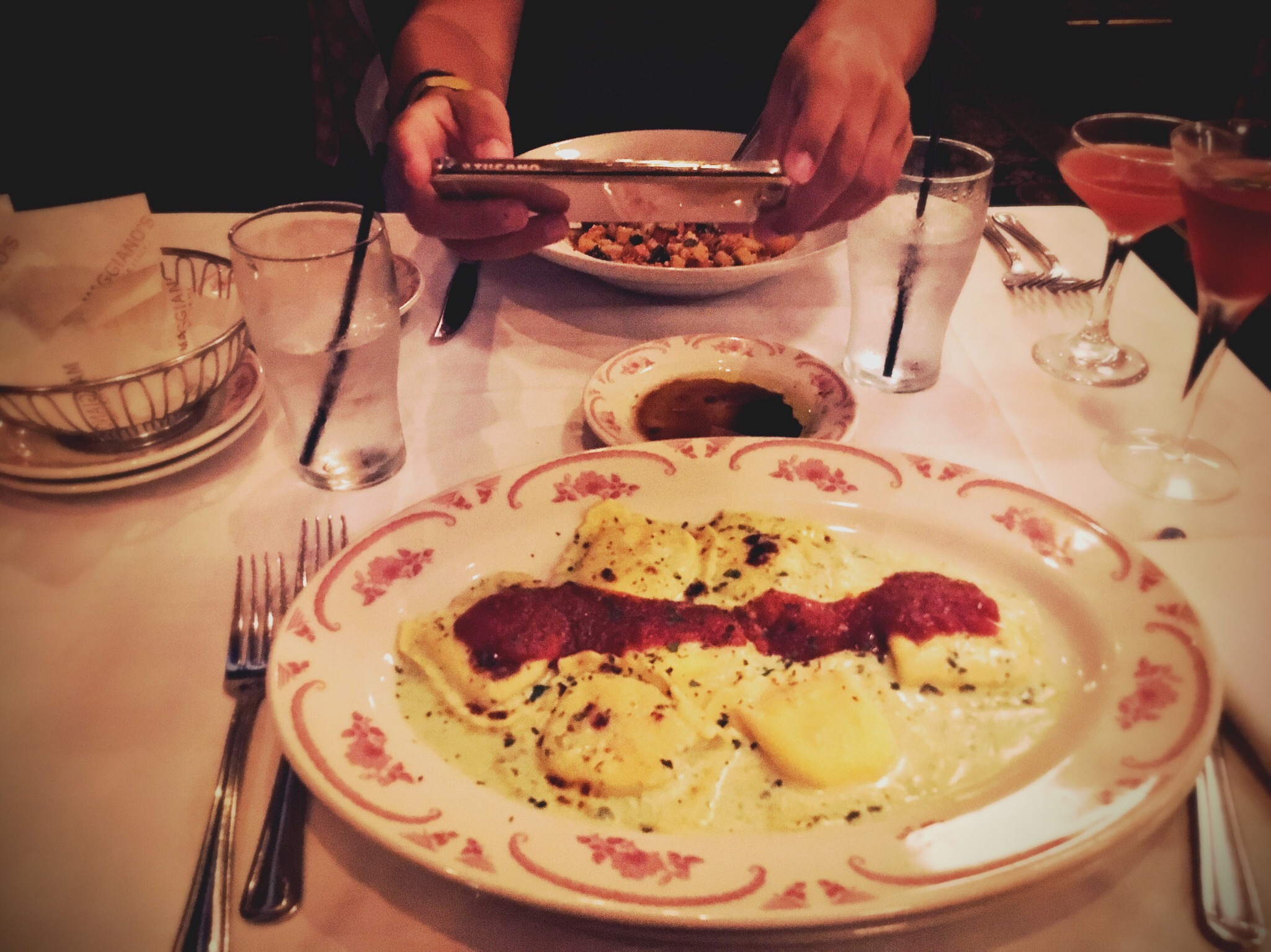 And did we ever! We found an Italian restaurant called Maggiano’s Little Italy and it looked super fancy on the outside, but warm and homely on the inside. (We actually literally think it used to be a homestead).