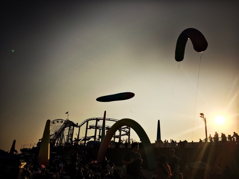 It was starting to get darker and as we headed back to Santa Monica, we realised there was actually a huge summer concert thing on and it was heaving on the beach. Thousands of people had set up camp and it was just a nightmare. We fought our way back to the bike stand and then retreated into the mall to try and eradicate any memory of what had just happened.