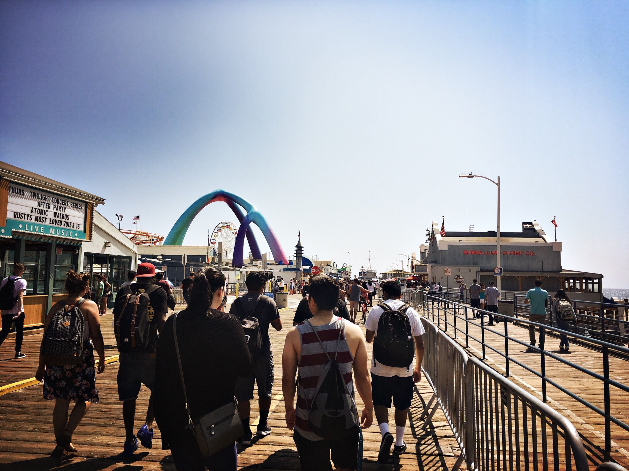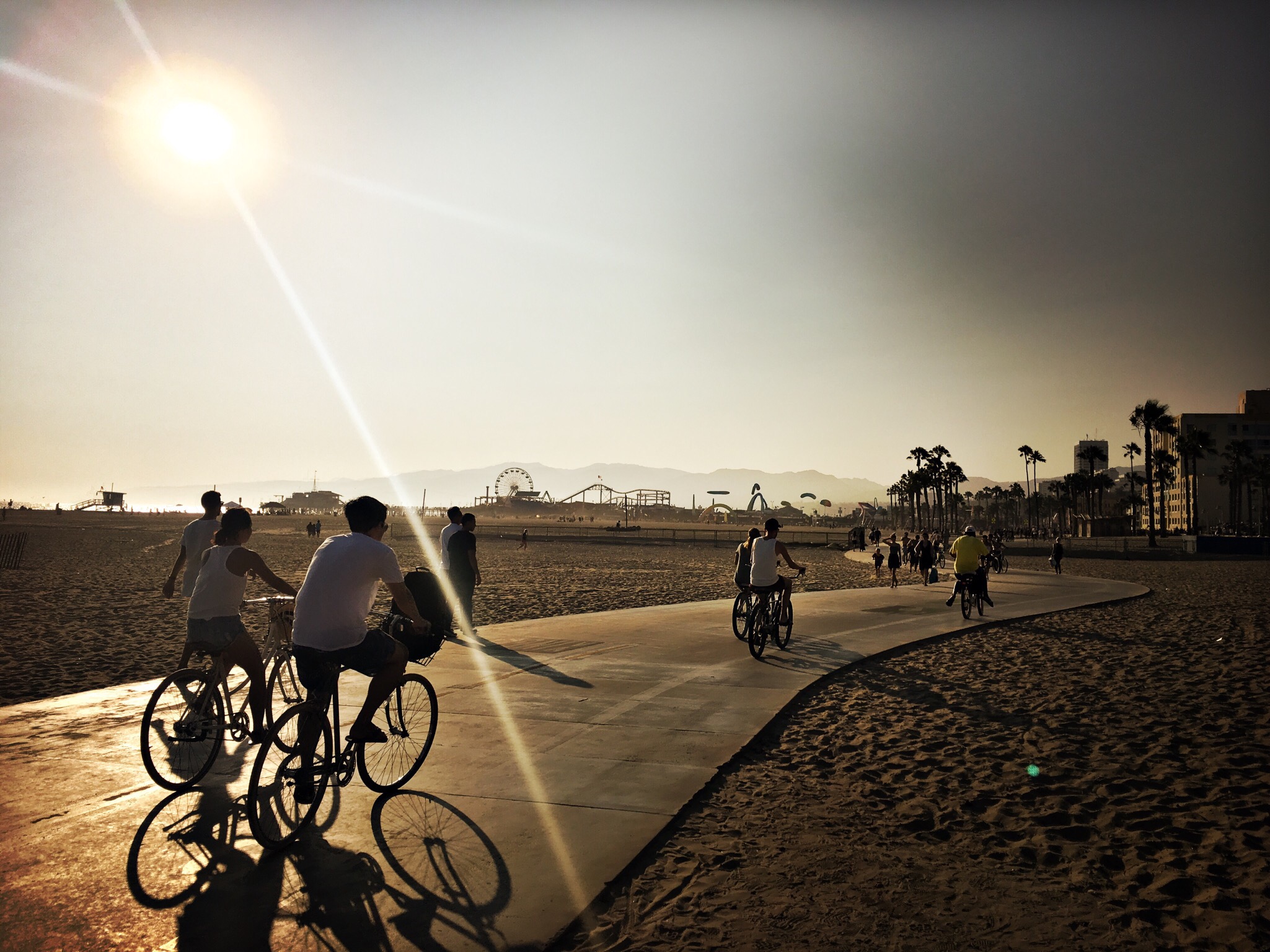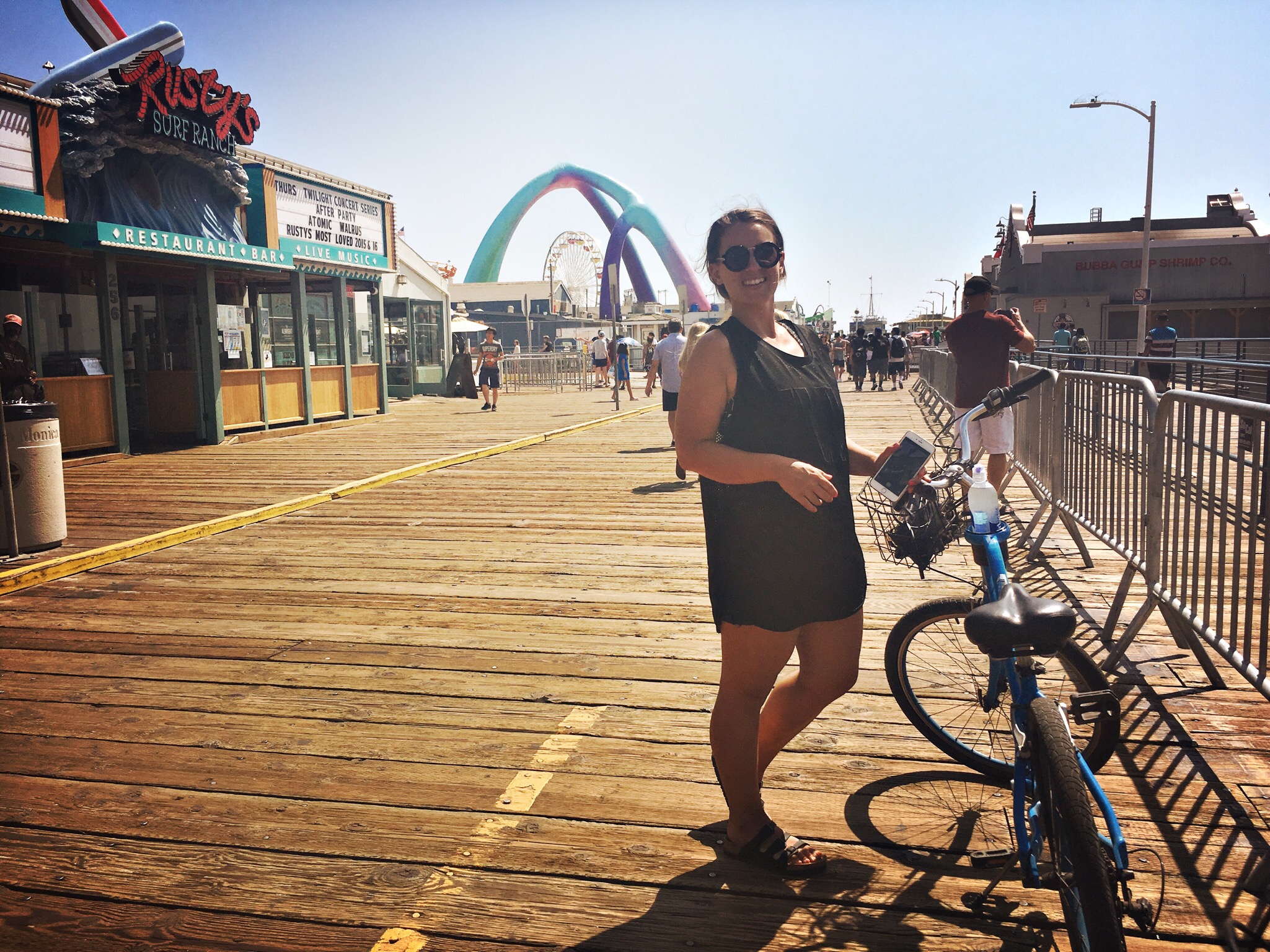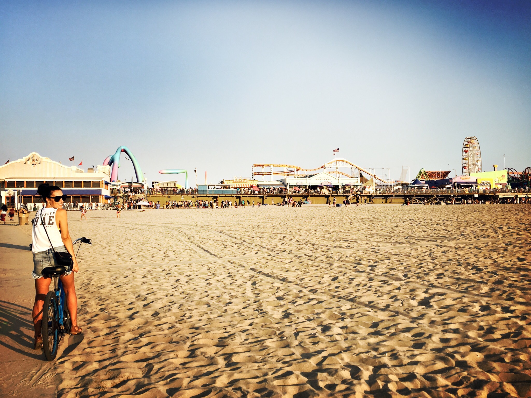 It was starting to get darker and as we headed back to Santa Monica, we realised there was actually a huge summer concert thing on and it was heaving on the beach. Thousands of people had set up camp and it was just a nightmare. We fought our way back to the bike stand and then retreated into the mall to try and eradicate any memory of what had just happened.